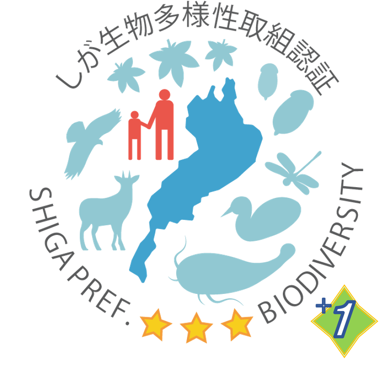 「しが生物多様性取組認証制度」とは、滋賀県における生物多様性の保全と自然資源の持続的な利活用に取り組む事業者に対して認証される制度です。この度、当社の生物多様性への取り組みが評価され、「3つ星+1」を取得しました。